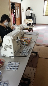今日は、幼稚園入園前の必需品「絵本袋」の作製だそうです。